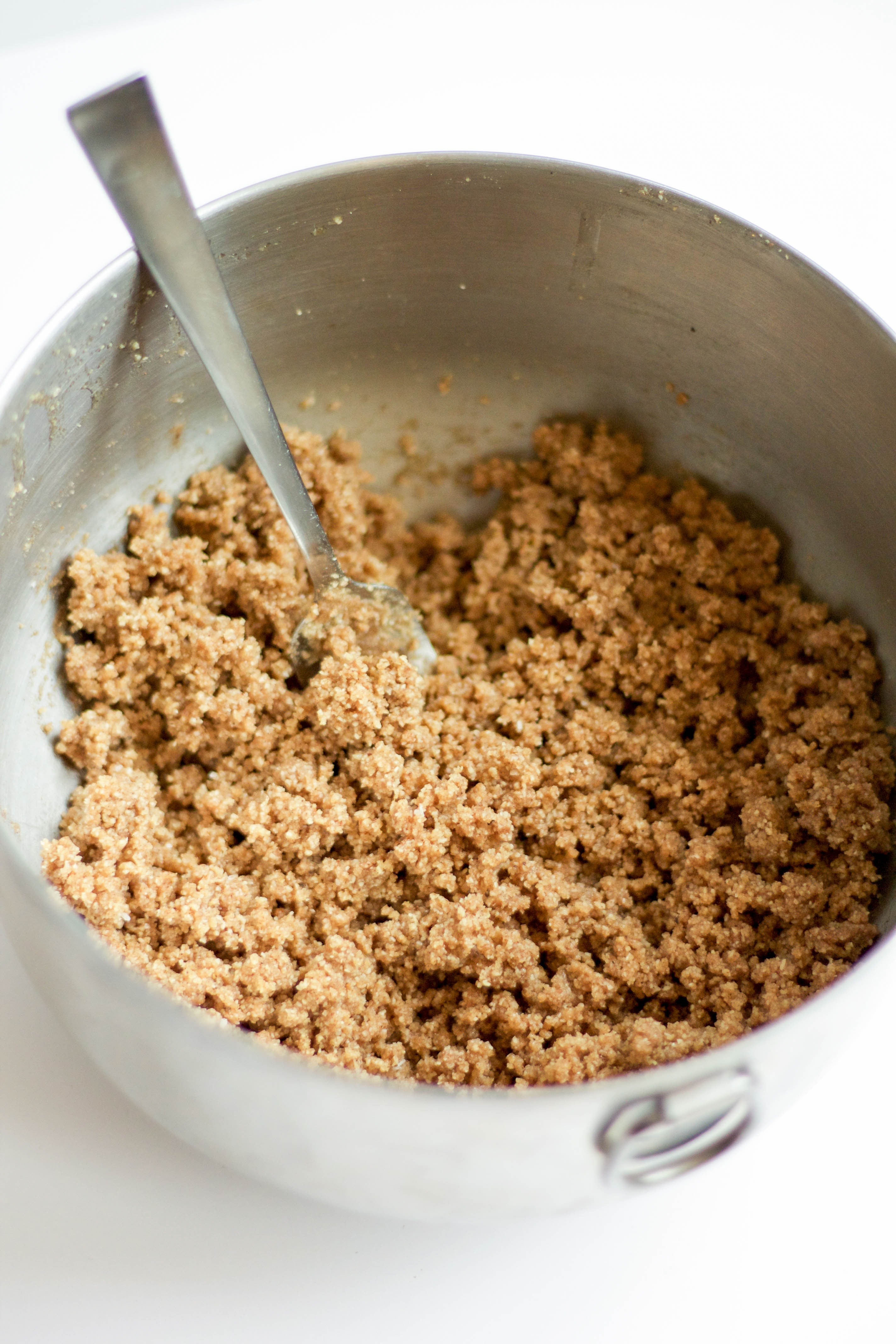 - Whisk together dry ingredients. Add in wet ingredients, and mix to combine. Dough will be slightly wet and crumbly, but sticks together well.